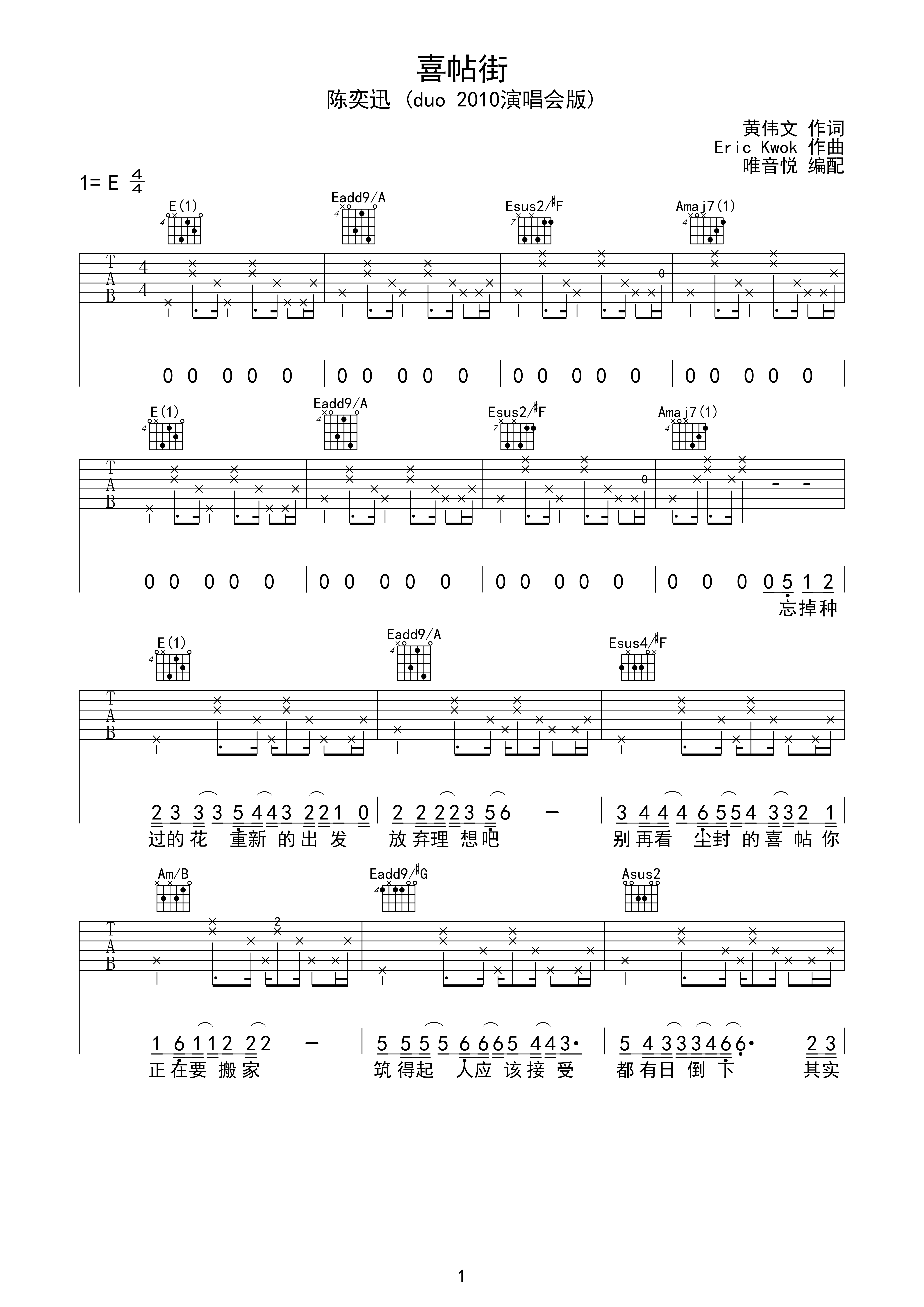 喜帖街(吉他弹唱,小叶歌制谱版)_简谱