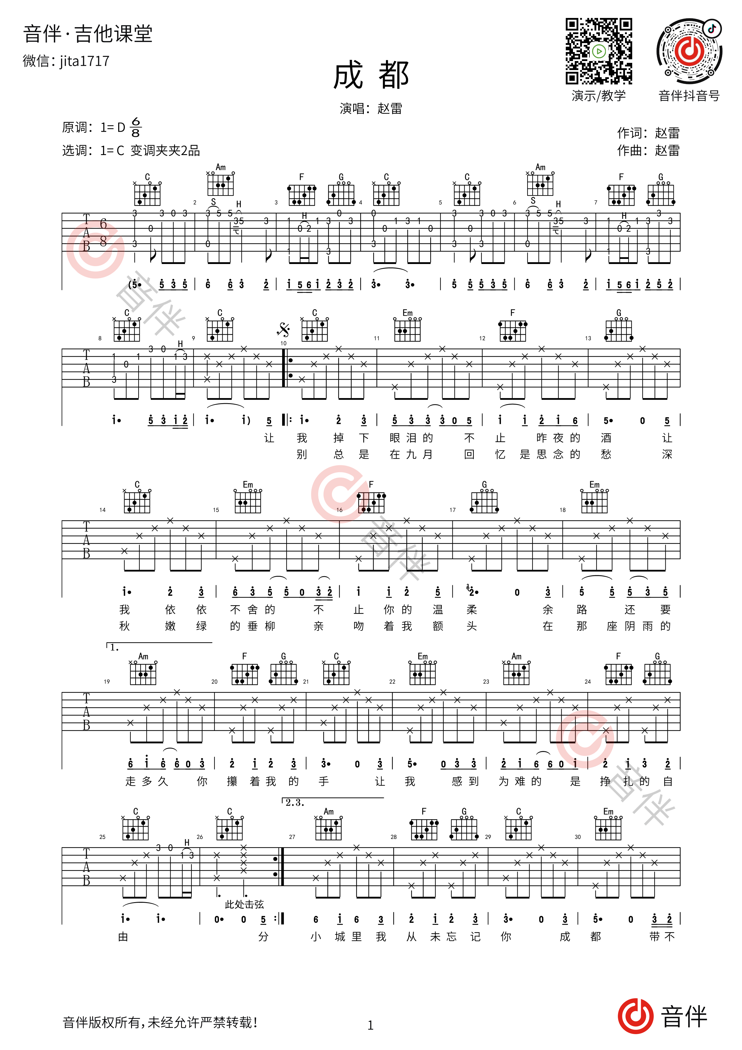 吉他谱 成都@抖音小助手 - 抖音
