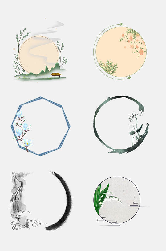 中式边框标题框古风山水水墨泼墨设计元素
