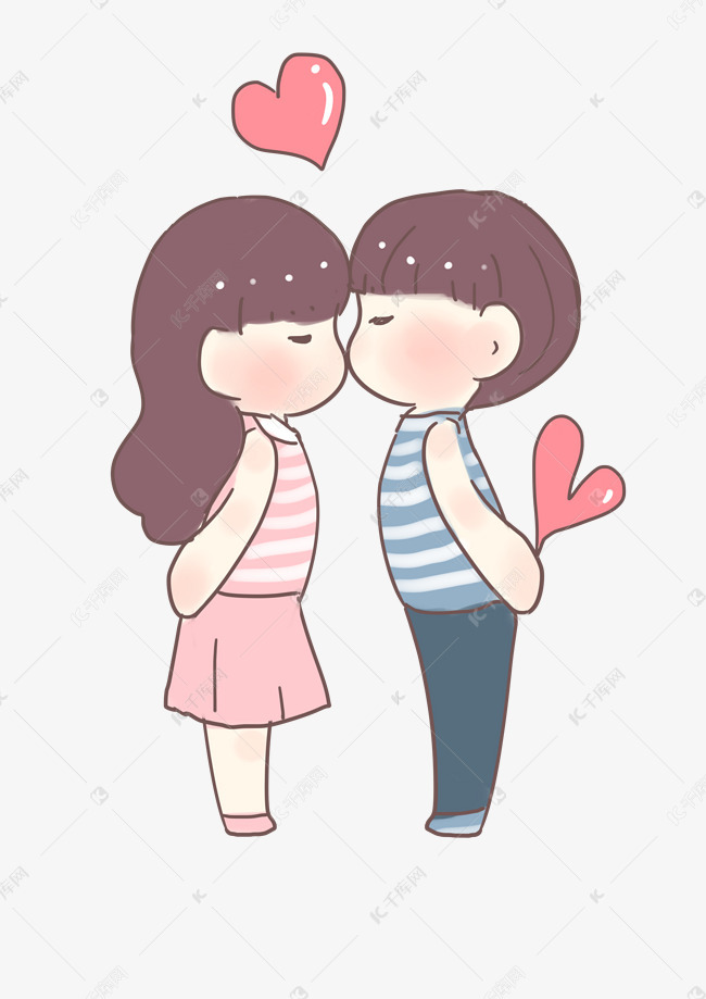 卡通手绘接吻的情侣png素材透明免抠图片-动植人物