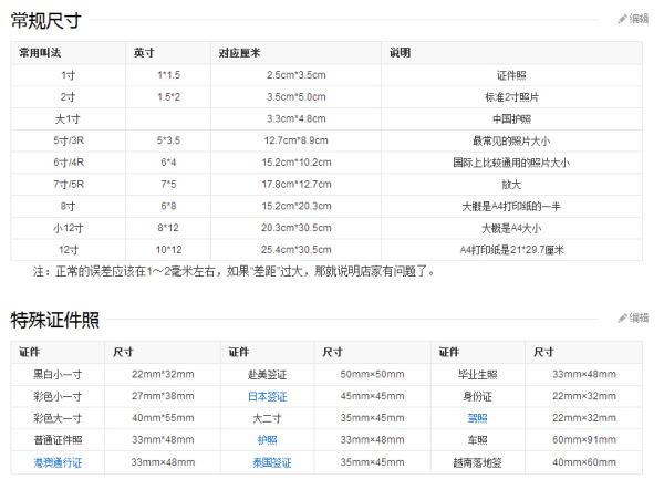 6寸,7寸等,数值取的是照片较长的那一边;按照目前的通行标准,照片尺寸