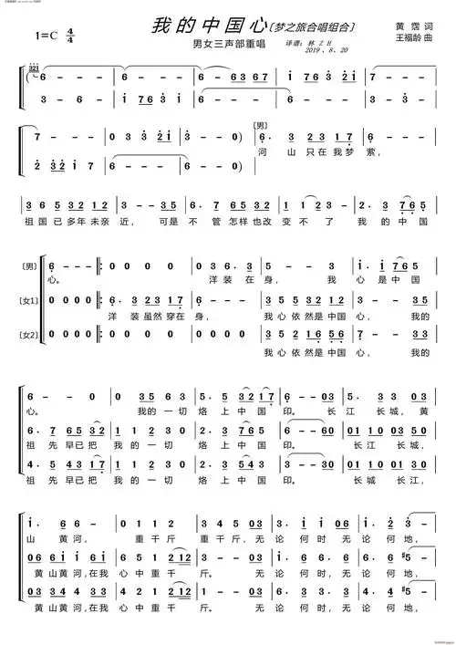 我的中国心(〔 合唱组合〕 男女三声部重唱 ) 梦之旅 歌谱简谱网