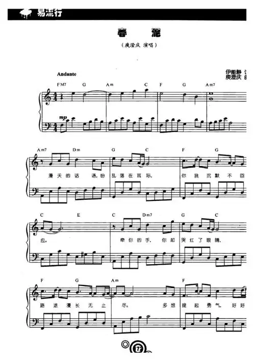 春泥(庾澄庆)原版五线谱钢琴谱正谱乐谱_第1页