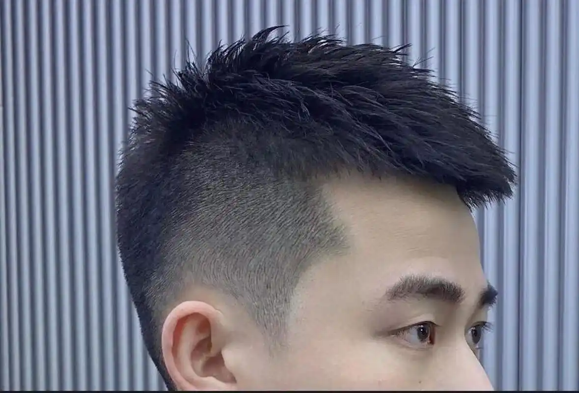 男生栗子头发型侧面头发剃光一些更潮,顶部头发修剪得有些细碎,层次感