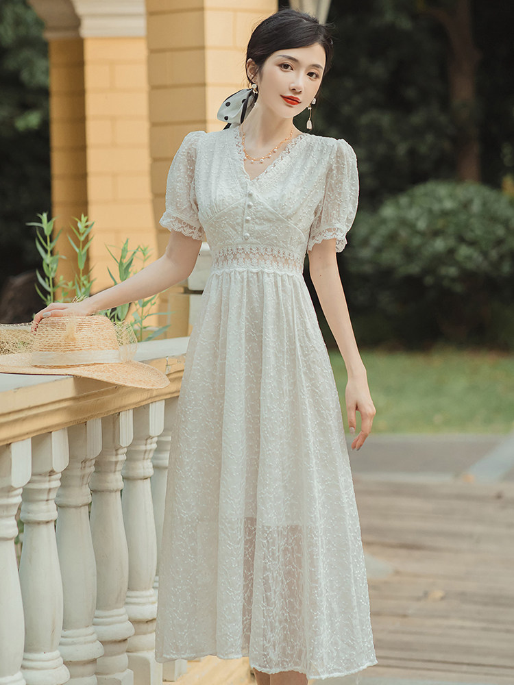 夏季女装法式复古温柔蕾丝镂空气质连衣裙薄款裙子高级感小众8330