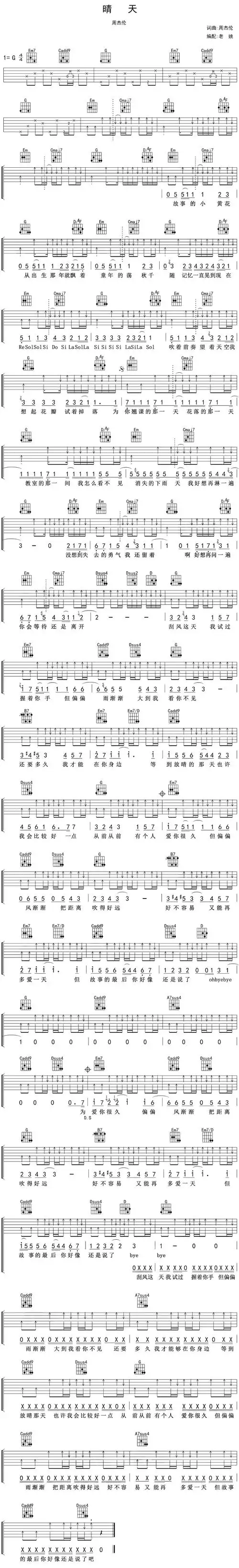 周杰伦晴天原版g调吉他谱周杰伦晴天流行弹唱吉他谱