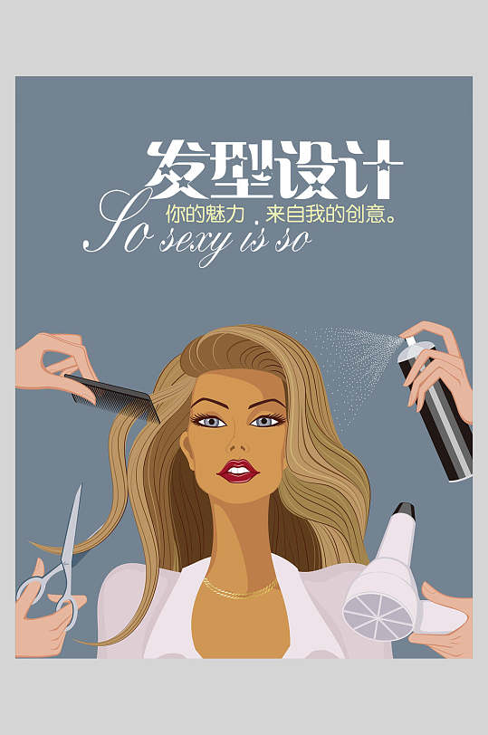 手绘发型设计创意美容美发造型海报