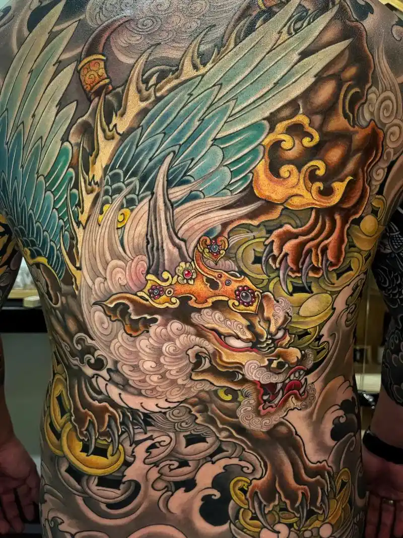 满背重彩貔貅,完成90% #满背 #貔貅纹身 #传统纹身 # - 抖音