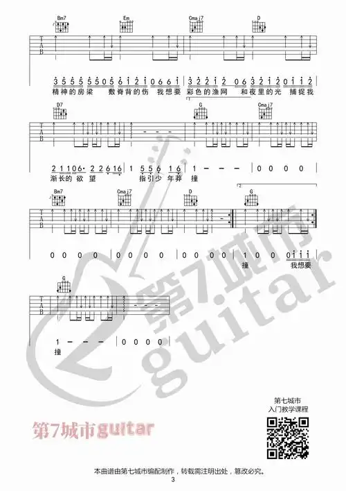 我想要吉他谱g调盖君炎第七城市编配