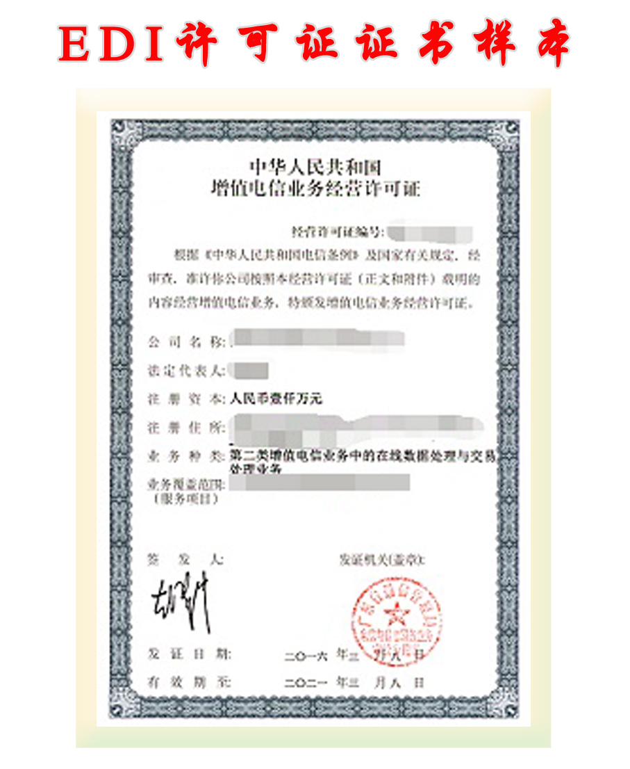 edi经营许可证全称:(第二类)增值电信业务经营许可证-在线数据处理与