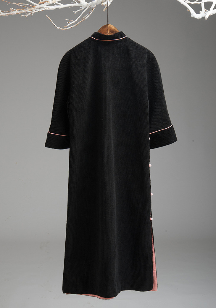原创设计新中式复古黑色灯心绒长袍外套货号xs17163