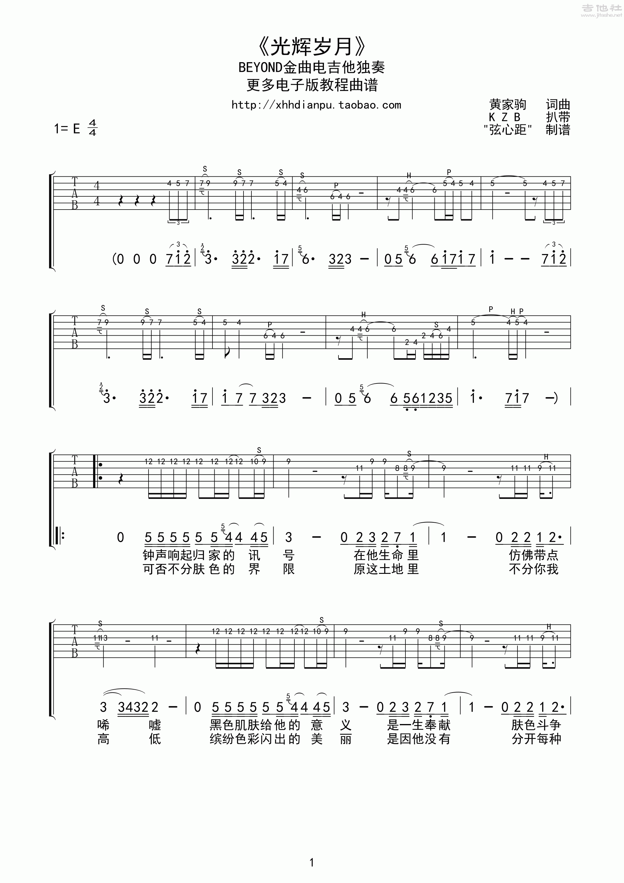 光辉岁月吉他谱(图片谱,电吉他,独奏)_beyond_光辉岁月01.gif