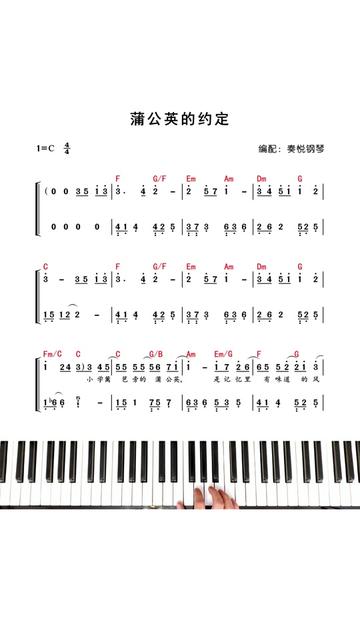 蒲公英的约定 #周杰伦 #钢琴简谱 #钢琴教学 #成人学钢琴