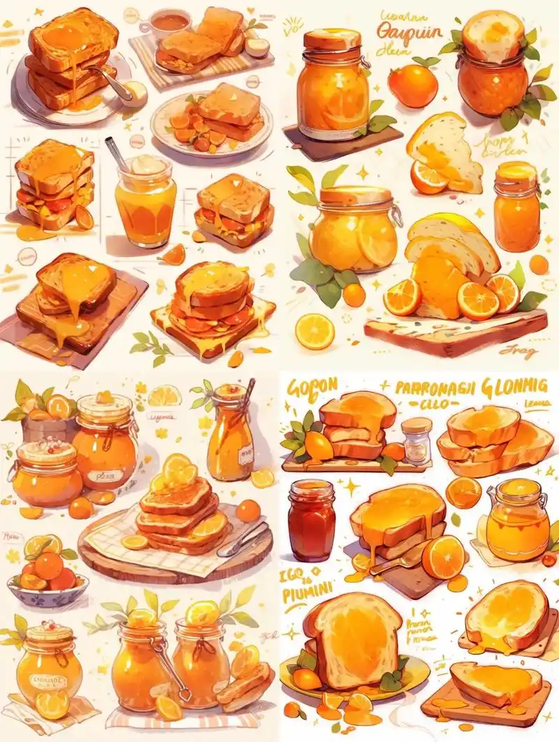 美食手帐插画素材分享-橙子果酱.#插画 #midjourne - 抖音
