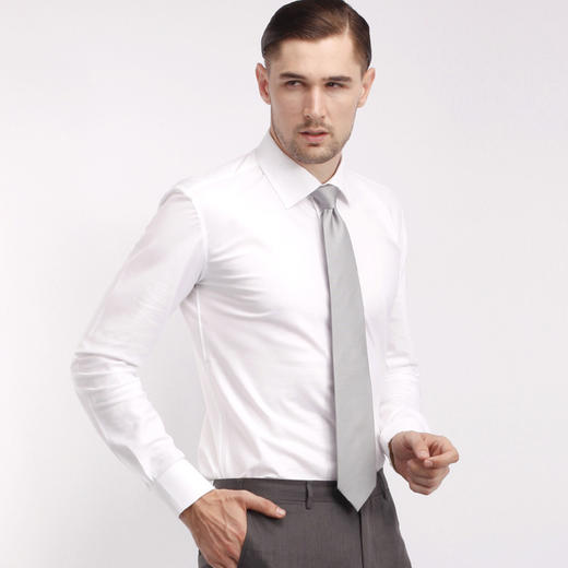 仕族eabri男士尊轩纯白隐纹英式商务衬衫