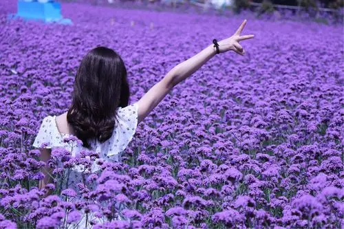 格桑花花海美女背影图片,高清图片