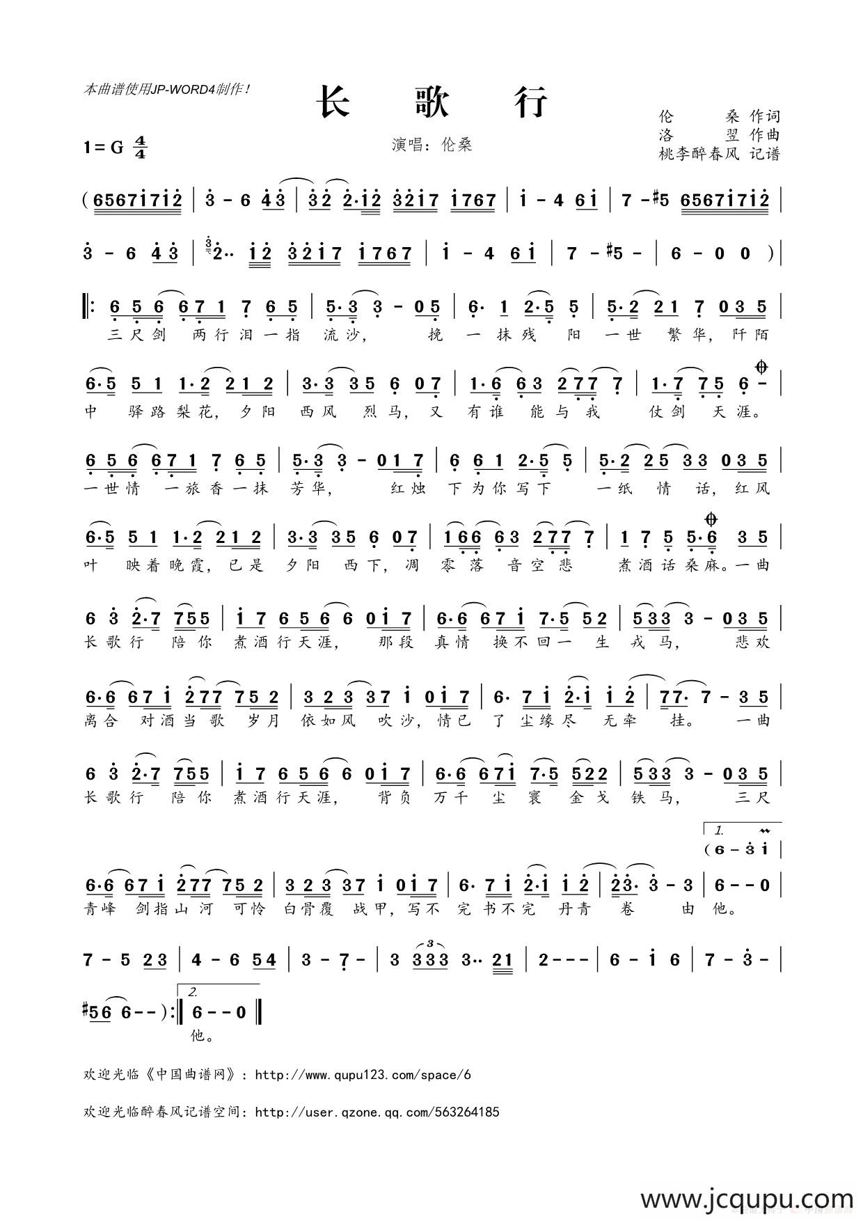 长歌行_简谱_搜谱网