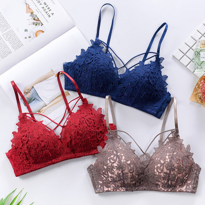 日系性感花瓣蕾丝文胸罩无钢圈薄款聚拢美背少女无痕刺绣内衣套装_7折