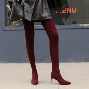 dieemolz裤靴一体长靴女2021新款尖头高跟鞋性感过膝弹力连裤袜靴