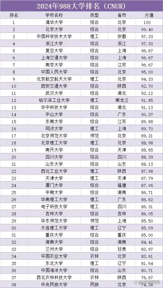 国内985大学排名图,一定要让孩子打印贴上,及时当勉励,没有比这更专业