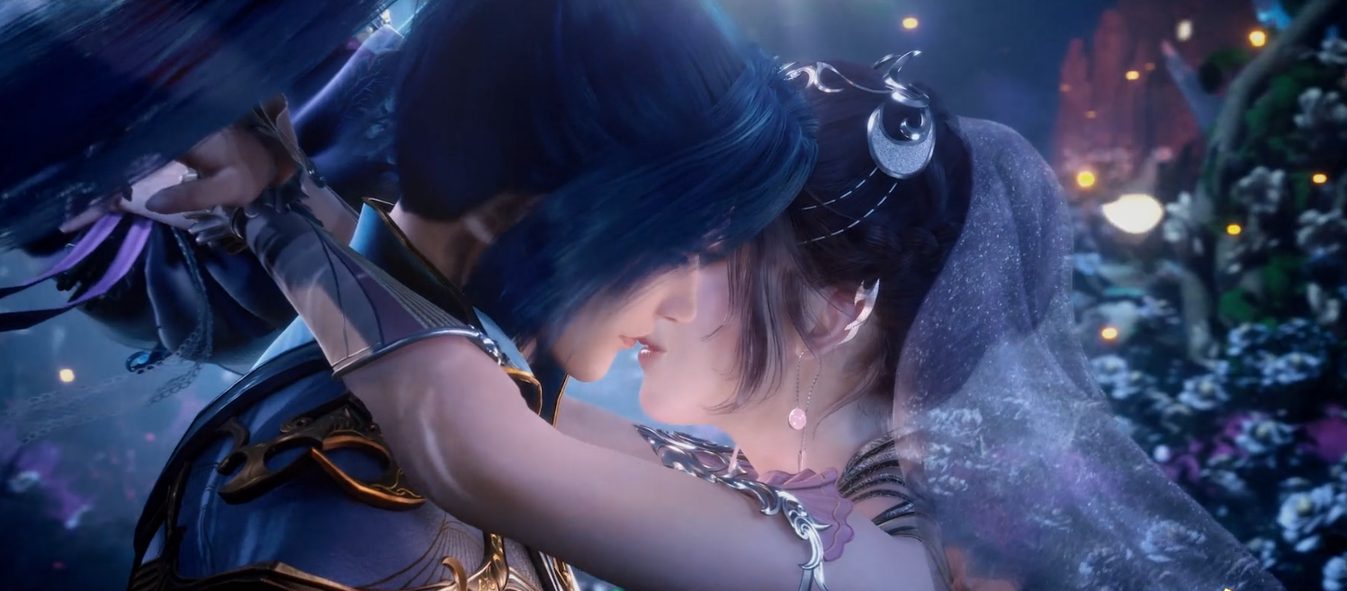 在唐昊阿银的见证下,唐三向小舞求婚,两人接吻,画面太甜了