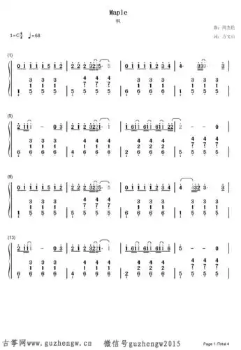枫(周杰伦) - 曲谱 简谱 歌谱 琴谱 总谱 音乐教程