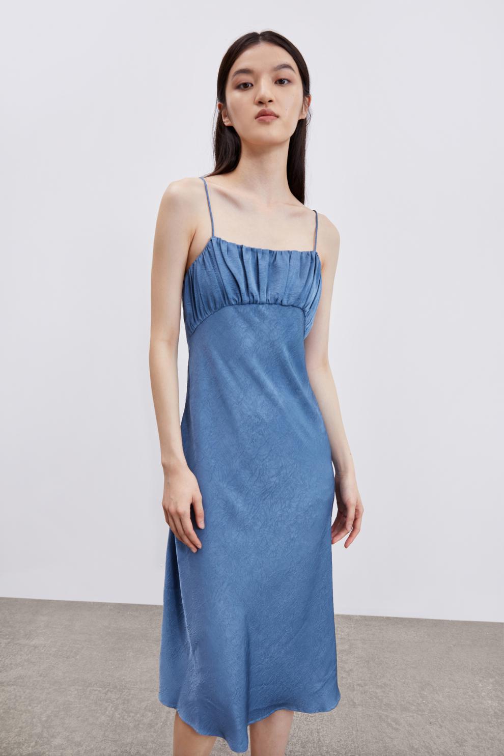 法若莎(faruosha)轻奢女装2021夏装新款时尚褶皱吊带连衣裙三宅气质
