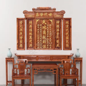 木雕中堂神位堂屋牌匾对联定制香樟木红花梨背景壁挂天地君亲师