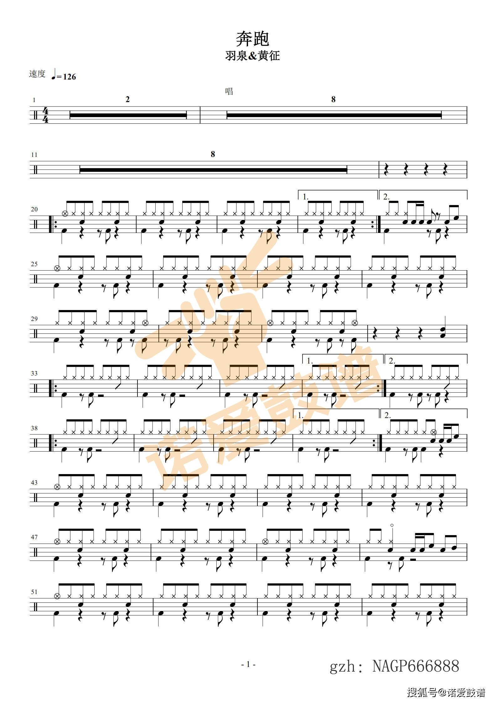 羽泉 - 奔跑 鼓谱(动态) 15元