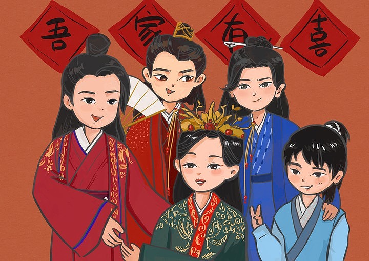 山河令同人创作五人全家福