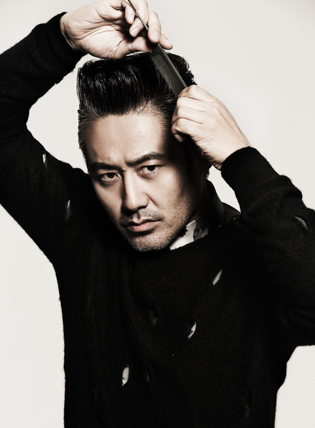 灰色大衣搭配黑色长裤,凸显出大叔的型男魅力无敌.