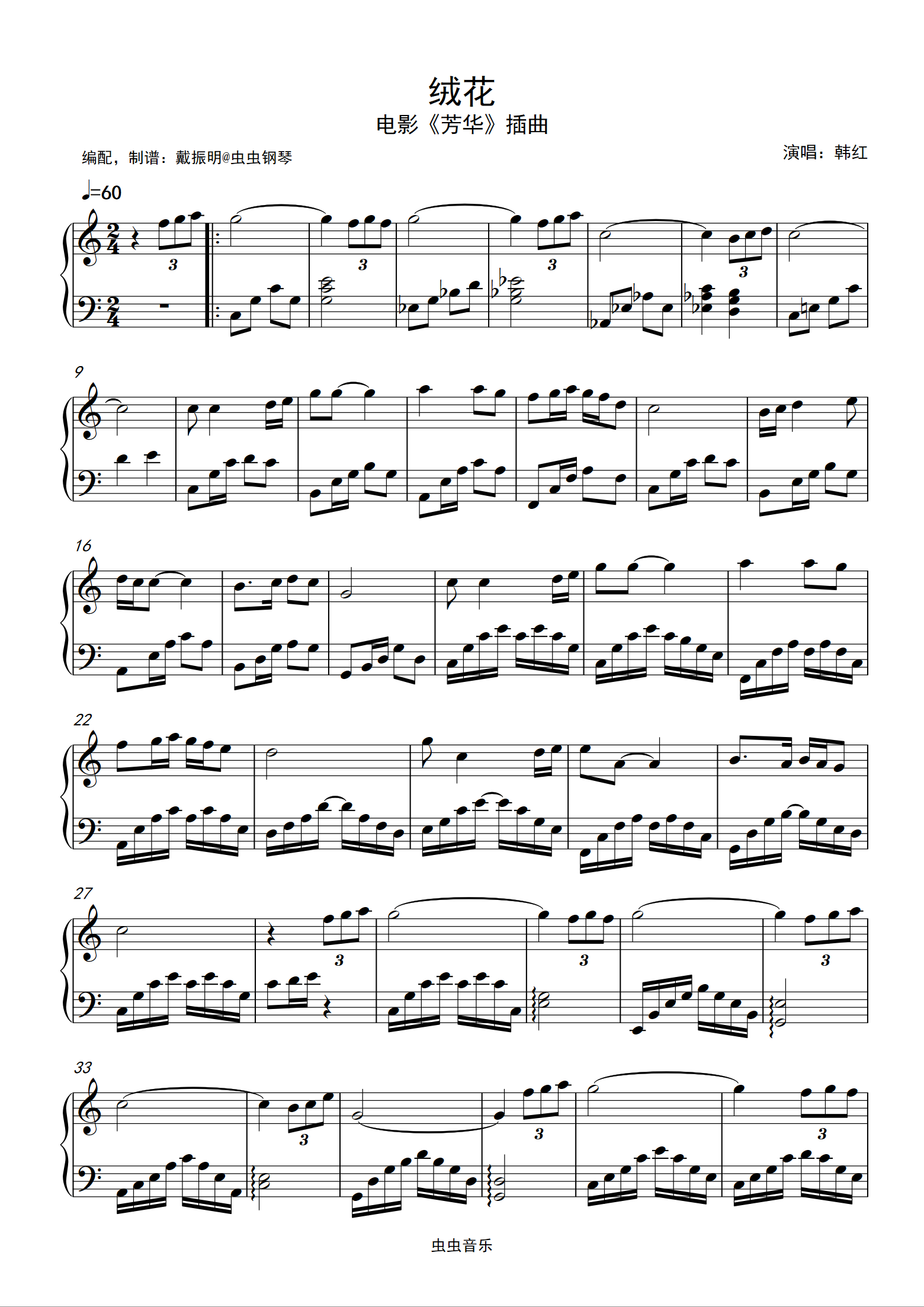 绒花钢琴谱-韩红-c调-虫虫钢琴