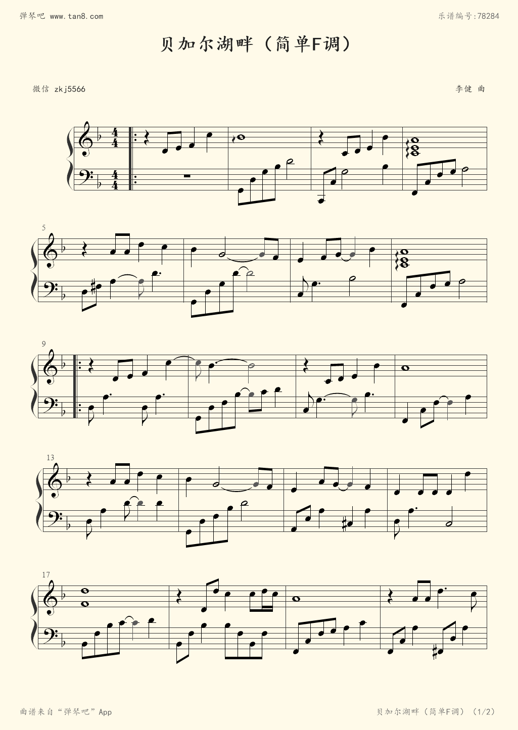 贝加尔湖畔钢琴谱_李健_c调 _流行钢琴谱五线谱独奏谱_钢琴谱|钢琴