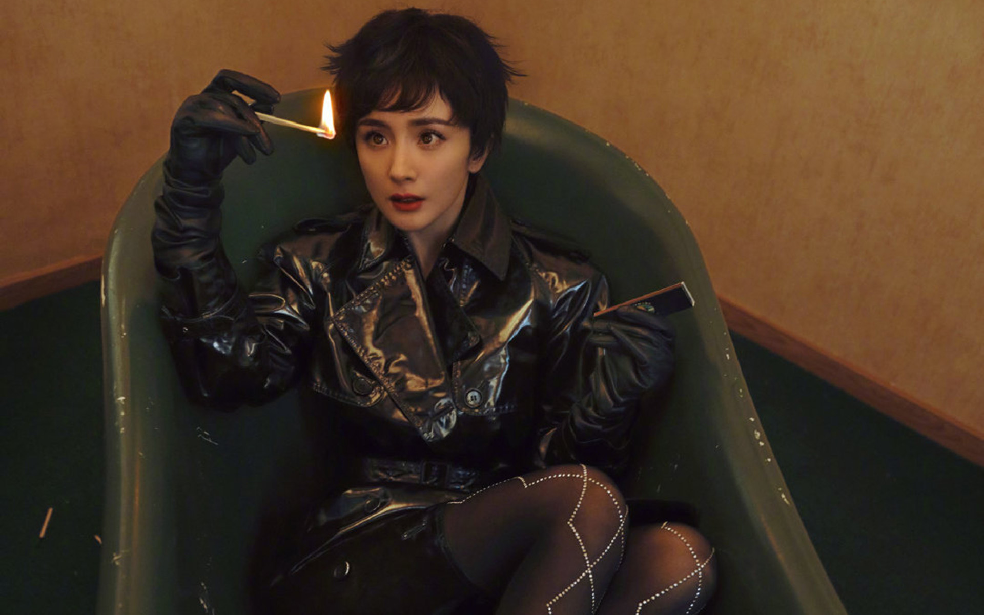杨幂黑色服饰搭配短发造型拍大片眼神凌厉气场超a