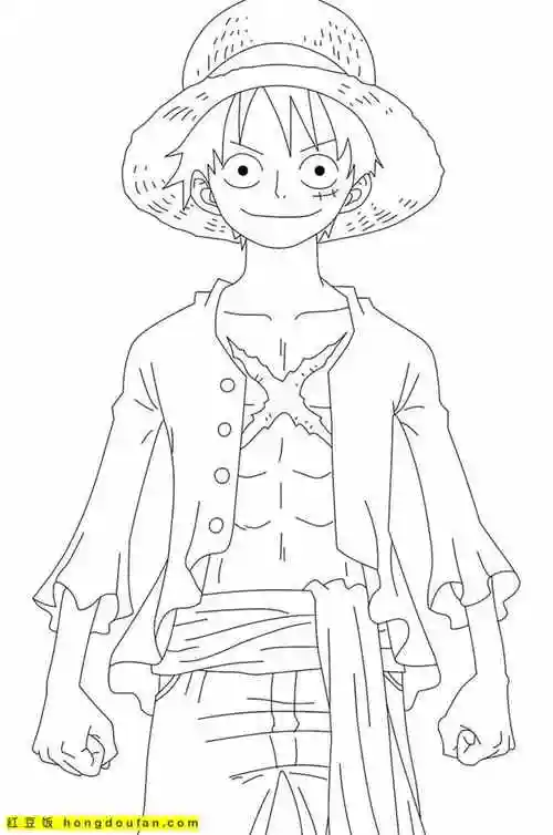 12张小学生最喜欢的卡通动画片海贼王路飞涂色图片-红豆饭小学生简笔