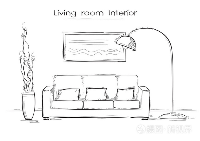 粗略的客厅室内的插图.矢量手绘插画-正版商用图片1nsr6a-摄图新视界