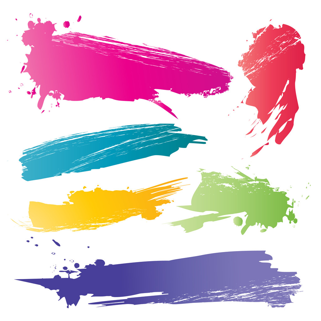彩色渐变艺术笔刷创意油漆笔触涂鸦画笔png免抠装饰包装元素素材
