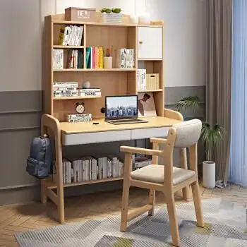 实木书桌书架一体书柜组合卧室小户型学生写字台简约家用电脑桌
