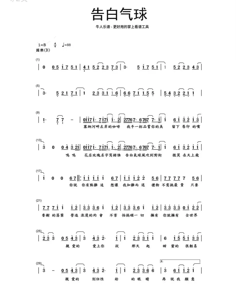 今日分享~告白气球 优美简谱版#前奏一响拾起多少人的回忆 # - 抖音