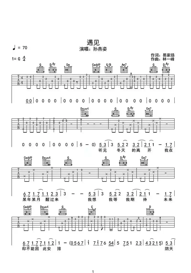 遇见吉他谱 男生版 孙燕姿 c调指法 无限延音编配1
