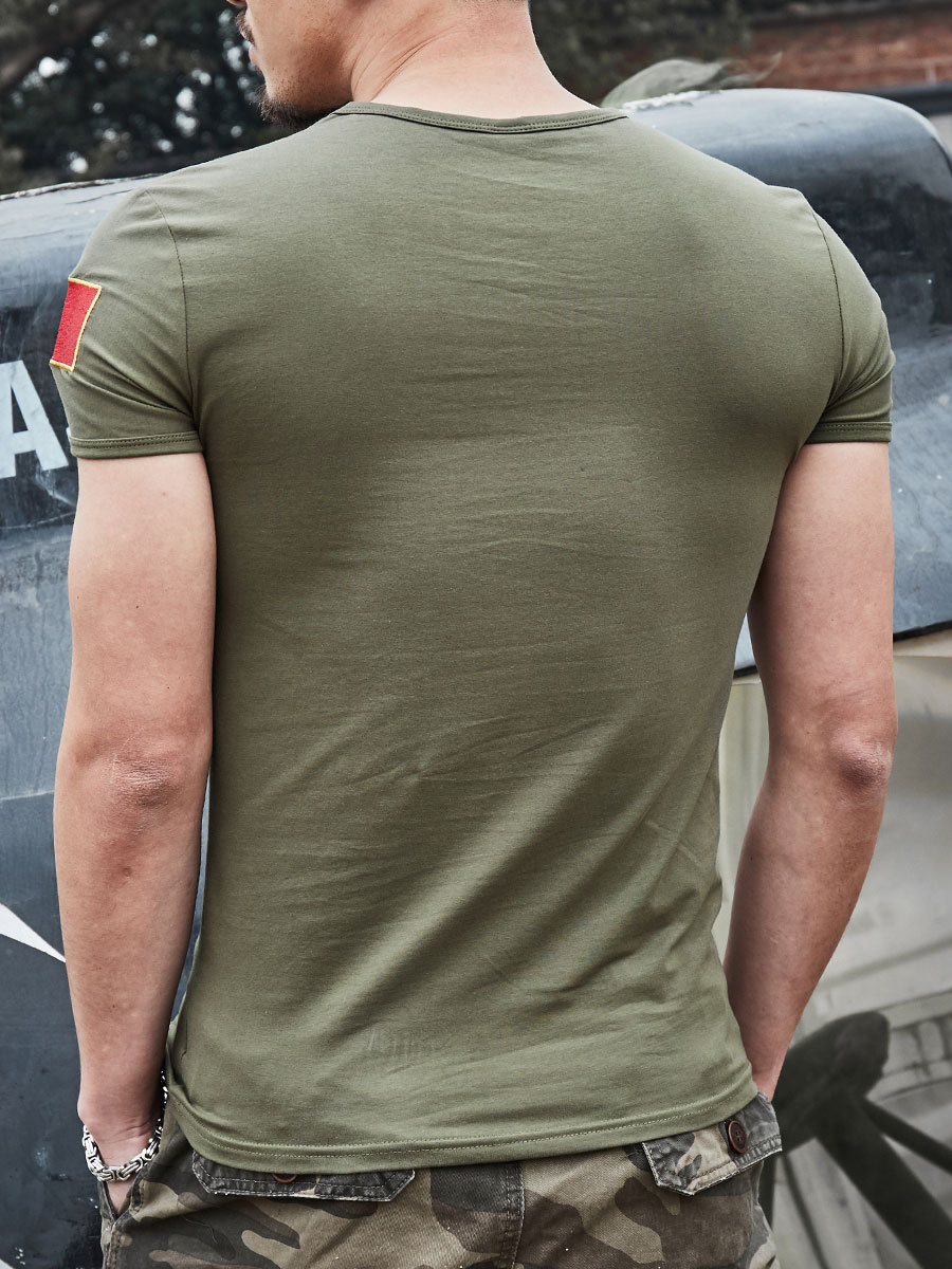 部队男式军旅风t恤户外军迷新款中国字刺绣男士修身短袖t恤特种兵