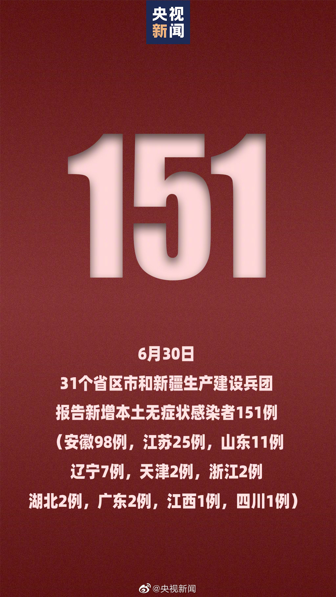 全国疫情最新消息6月30日新增本土确诊12例本土无症状151例