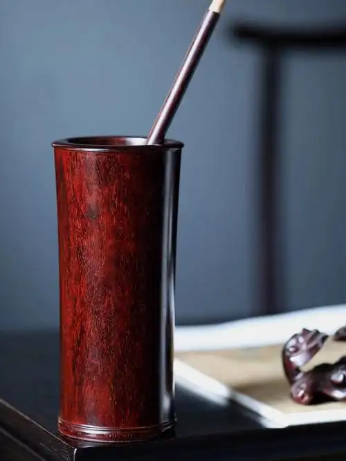 小叶紫檀 | 笔筒拆房老料制,实底大口径