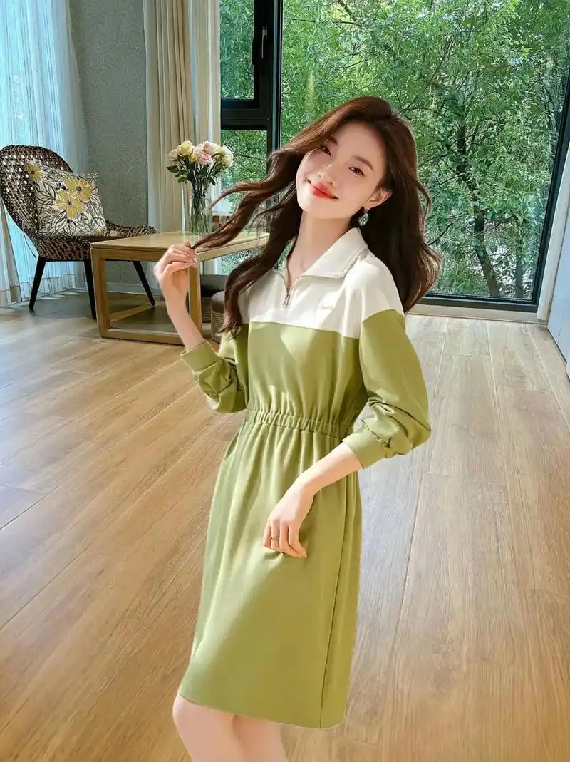 沫晗依美长袖收腰膝上翻领减龄休闲连衣裙女2024夏季新款.17 - 抖音