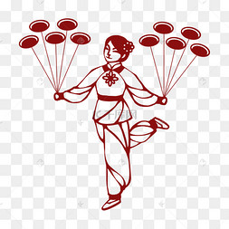 杂技转碟剪纸风民间杂耍