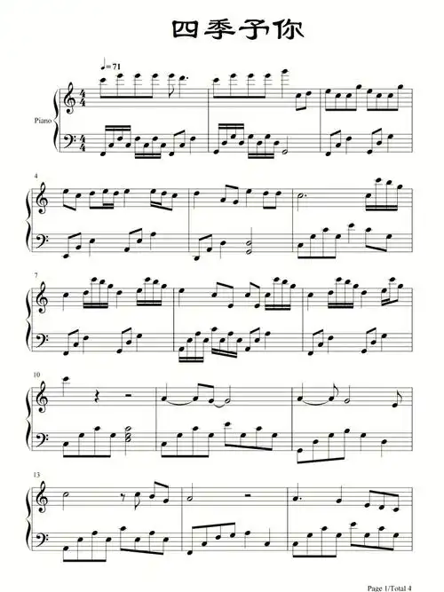 四季予你钢琴谱