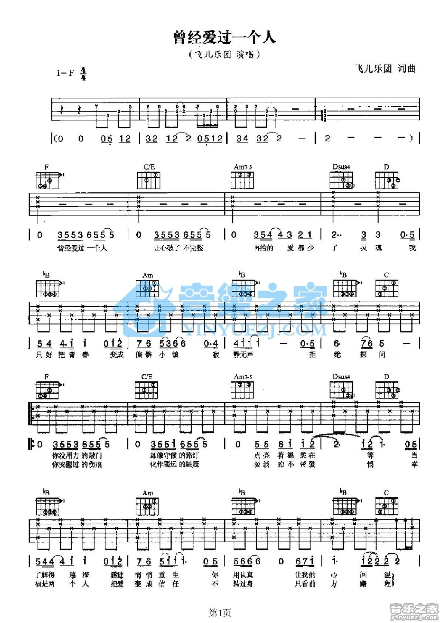 曾经爱过一个人吉他谱飞儿乐团图片谱完整版