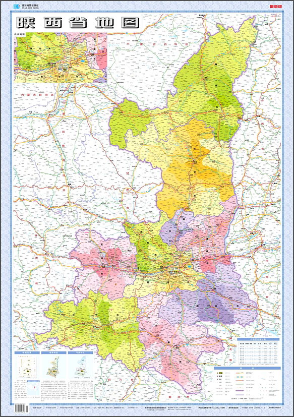 陕西省地图 套封折叠图 约1.1*0.8m 全省交通政区 星球社分省系列