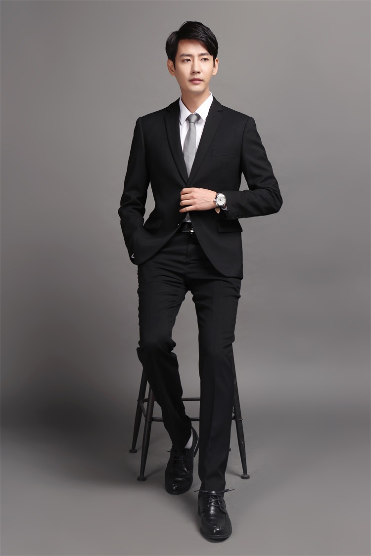 小驳头长袖男士职业装定制格式