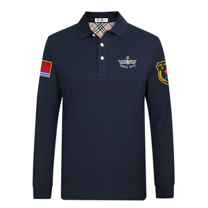 中国海军polo衫男长袖陆军刺绣军装空军翻领纯棉t恤军迷秋衣服装